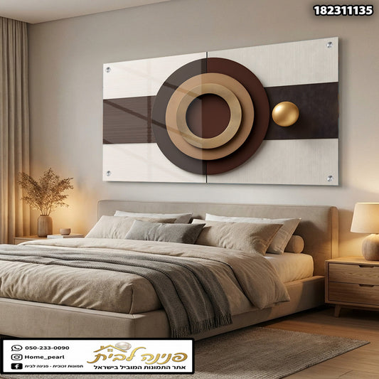 תמונות זכוכית - קומפוזיציית עיגולים מודרנית בגווני שוקולד וזהב