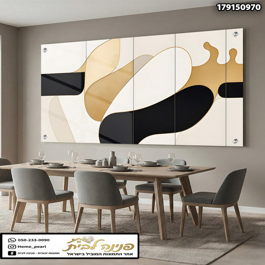 תמונות זכוכית - קומפוזיציה גיאומטרית אלגנטית בשחור לבן וזהב
