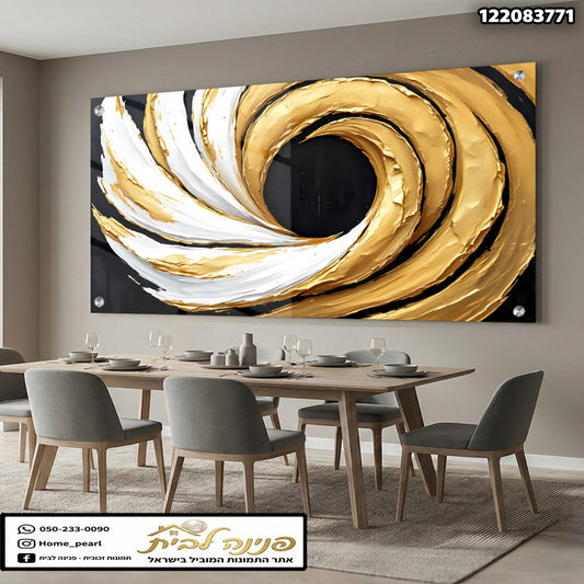 תמונות זכוכית - ספירלת זהב ולבן על רקע שחור